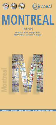 Our laminated and folded Borch Map of Montreal in the 12th edition contains: Montreal Centre 1:15 000, Olympic Park 1:15 000, Old Montreal 1:6500, Montreal & Region 1:250 000, the public transport system and an administrative map of Canada with time zones. Borch Maps contain a multitude of interesting and useful information like Top Sights, museums, monuments, markets and many other attractions, but also statistics, conversion tables, climate data and many detail maps, making a Borch Map an exce ...