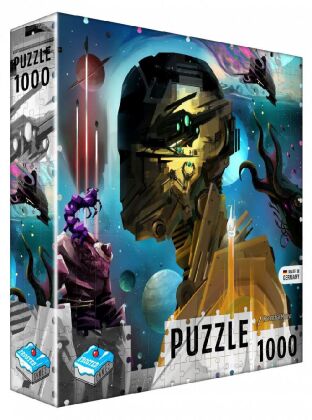 Ein 1.000-Teile-Puzzle mit dem Titel-Cover des Spiels Siderische Konfluenz mit der einzigartigen Illustration von Kwanchai Moriya. Das Puzzlemotiv zeigt nur die Cover-Illustration, ohne Spieltitel, Verlagslogo und Namen der Beteiligten.